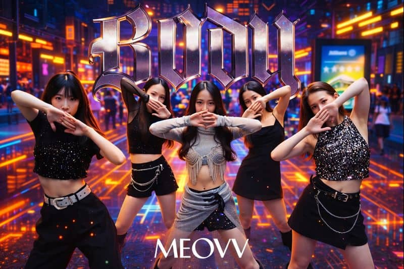 Meovv is a five-member girl group under THEBLACKLABEL, led creatively by producer Teddy. Meovv debuted on September 6, 2024, with the digital single “Meow,” and they drew attention fast for their sleek “black cat” concept and performance polish. Their rollout also felt modern, since the agency revealed members one by one and built hype through strong visuals and teaser storytelling.