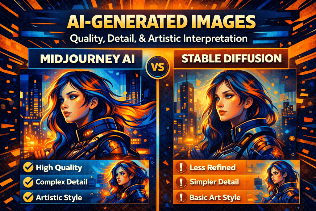 Midjourney is known for its artistic creativity and high-quality outputs. Compared to DALL·E and Stable Diffusion, it excels in producing unique and visually appealing artwork, though it lacks some customization features.